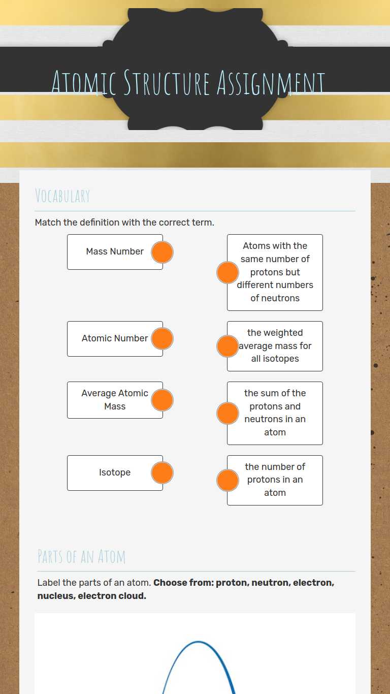 Why not use our atoms powerpoint alongside this worksheet to help . Inside of each atom are several smaller bits of matter called particles. Take the atomic structure (basic electricity) worksheet. Using this worksheet, students will illustrate the arrangement of electrons in a bohr model. Practice diagramming atoms and using the periodic table to pull information about atoms with this quiz page.